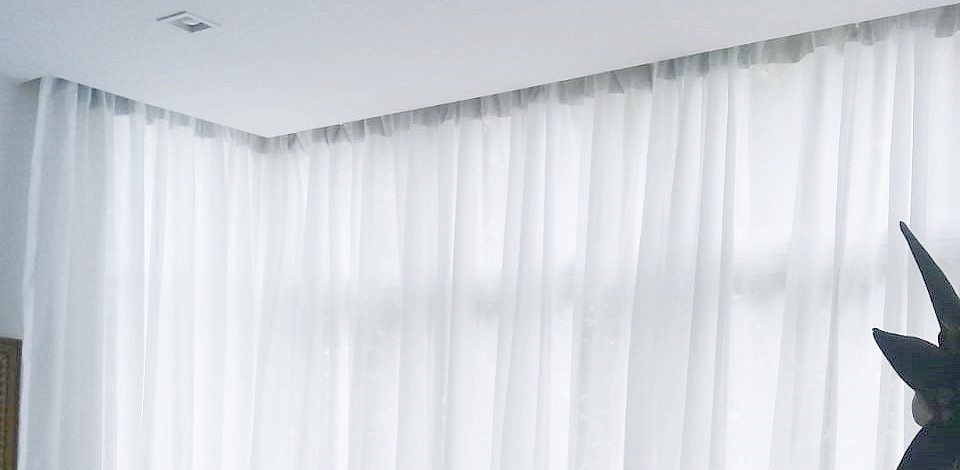 As cortinas de pregas podem ser confeccionadas sob medida para trilho ou varão deslizante fixados um pouco acima da janela, ou direto no teto, com ou sem cortineiro.